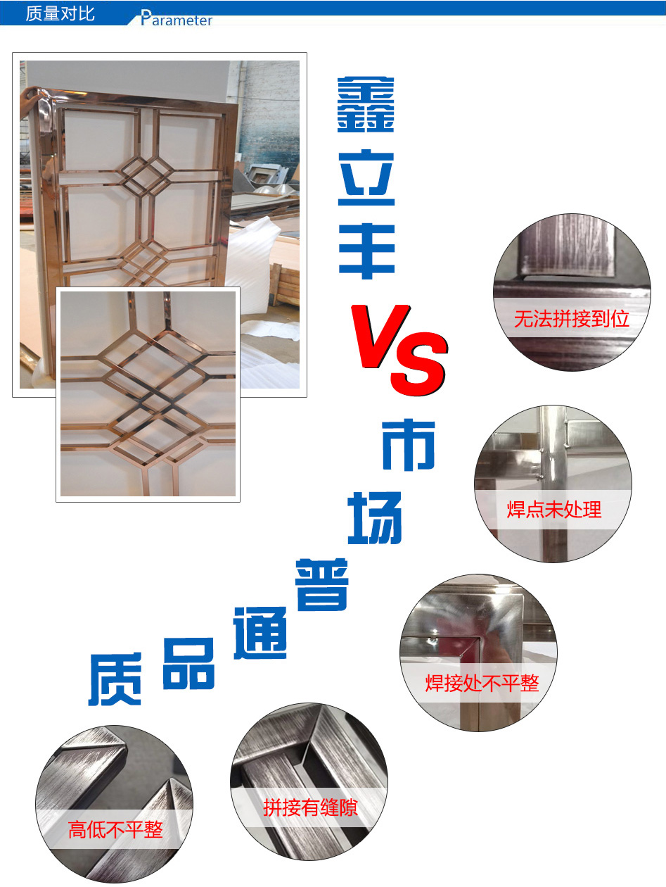 產(chǎn)品尺寸:根據(jù)需求定制 產(chǎn)品材質(zhì):201、304、316L 可選顏色:玫瑰金、鈦金、黑鈦金、香檳金、青古銅、紅古銅、咖啡金、灰色、按樣板定制 適用場所: 酒店、餐廳、會所、售樓部、商場、別墅、KTV