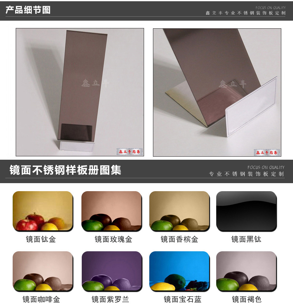 | 表面顏色 | 玫瑰金、鈦金、香檳金、黑鈦金、青古銅、紅古銅、其他定制顏色 | ||