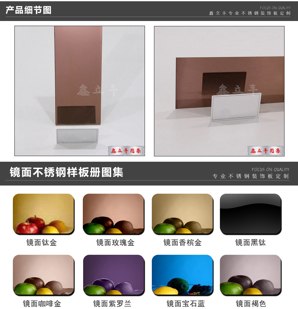 | 表面顏色 | 玫瑰金、鈦金、香檳金、黑鈦金、青古銅、紅古銅、其他定制顏色 | ||