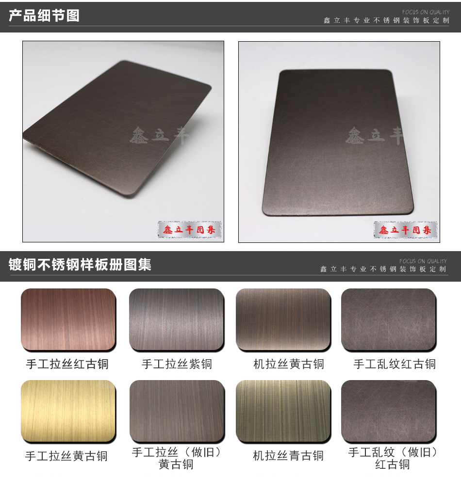 | 表面顏色 | 玫瑰金、鈦金、香檳金、黑鈦金、青古銅、紅古銅、其他定制顏色 | ||